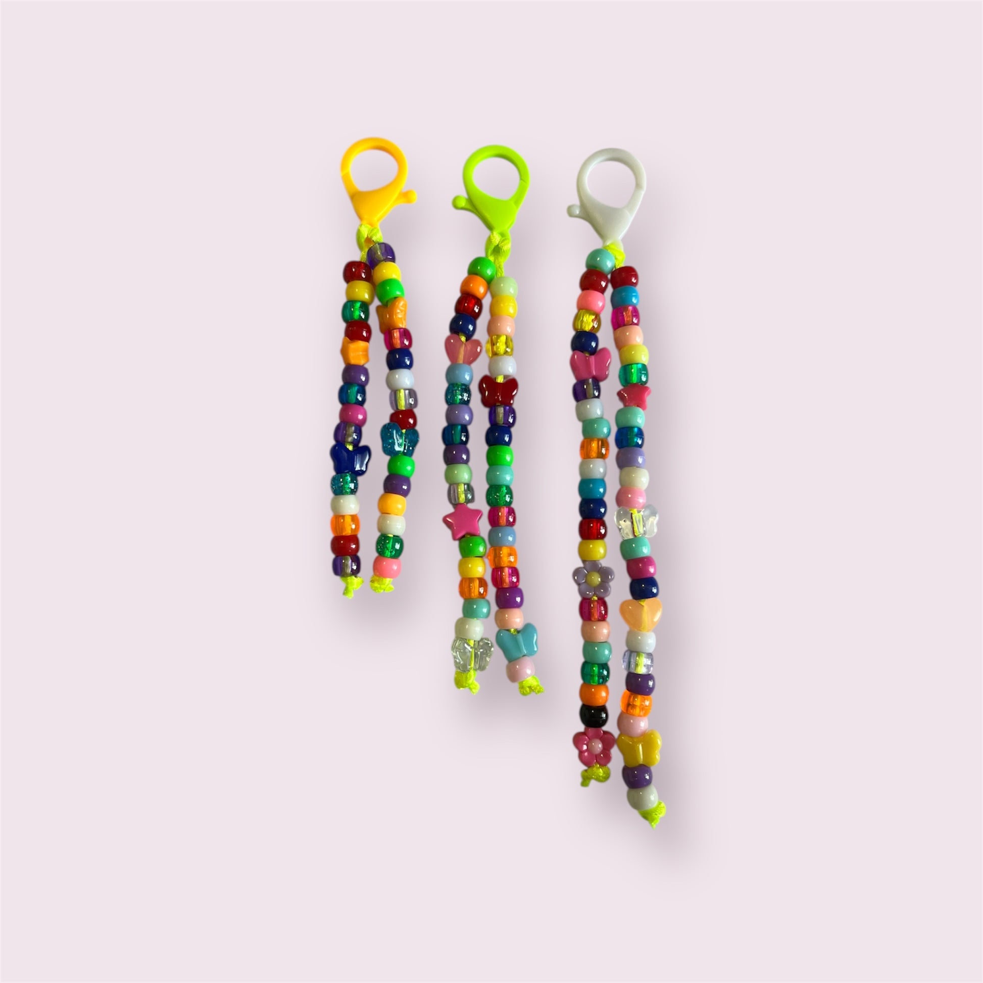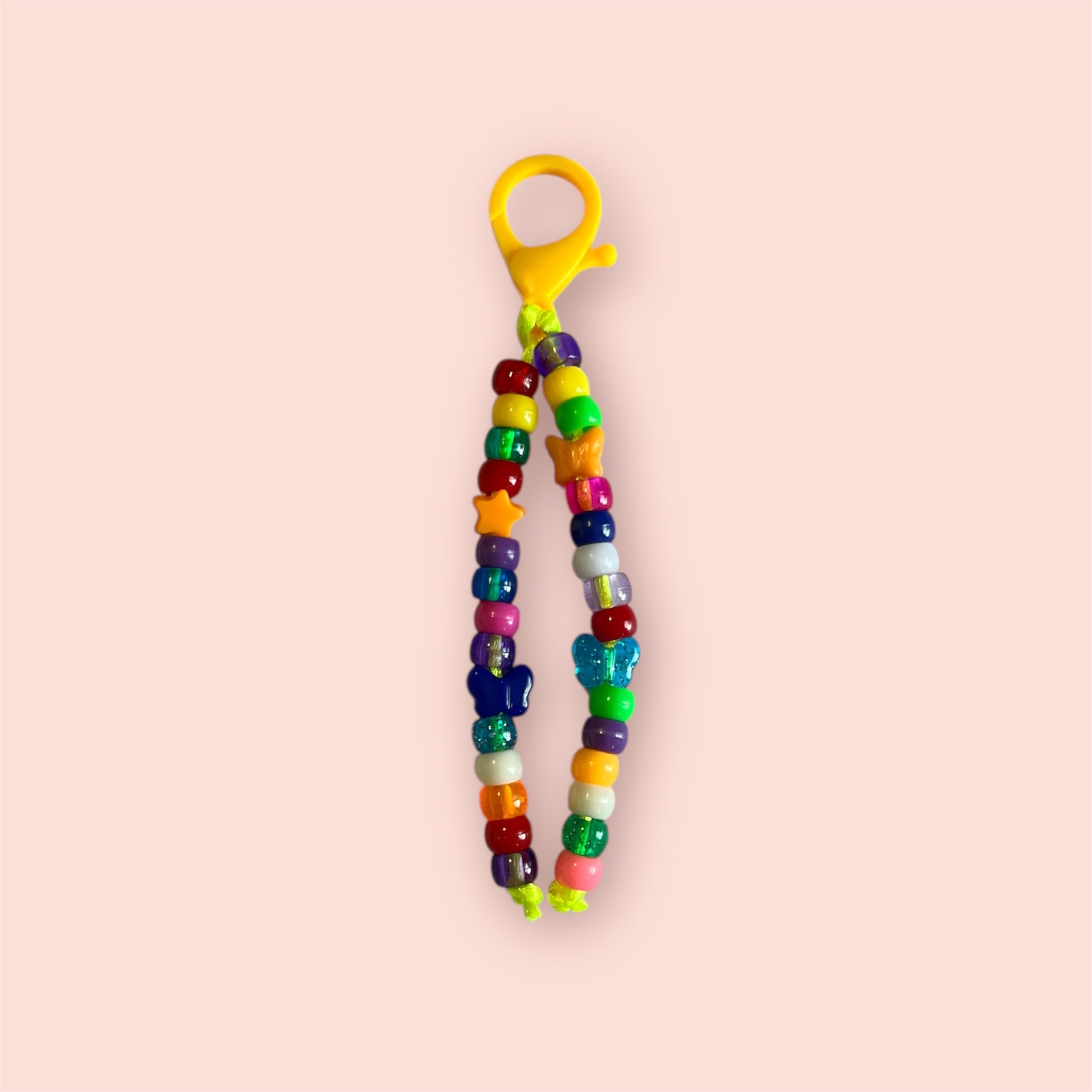 Brighten your day with these handmade rainbow dangles! Each piece bursts with colour, featuring a playful mix of glittery, star-shaped, flower, and novelty beads strung with love.